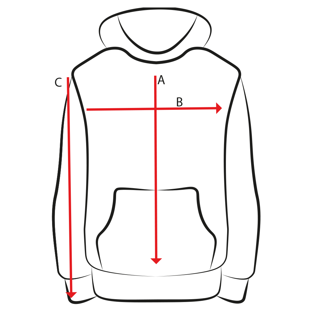 C - длина рукава от плечевого шва в см