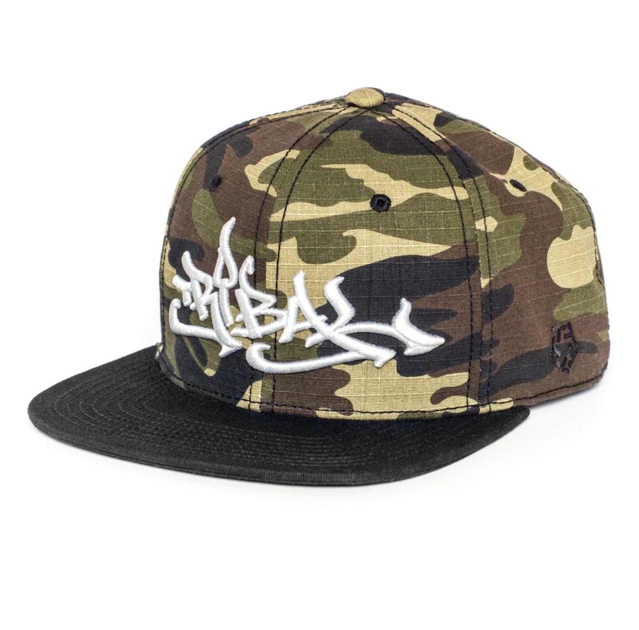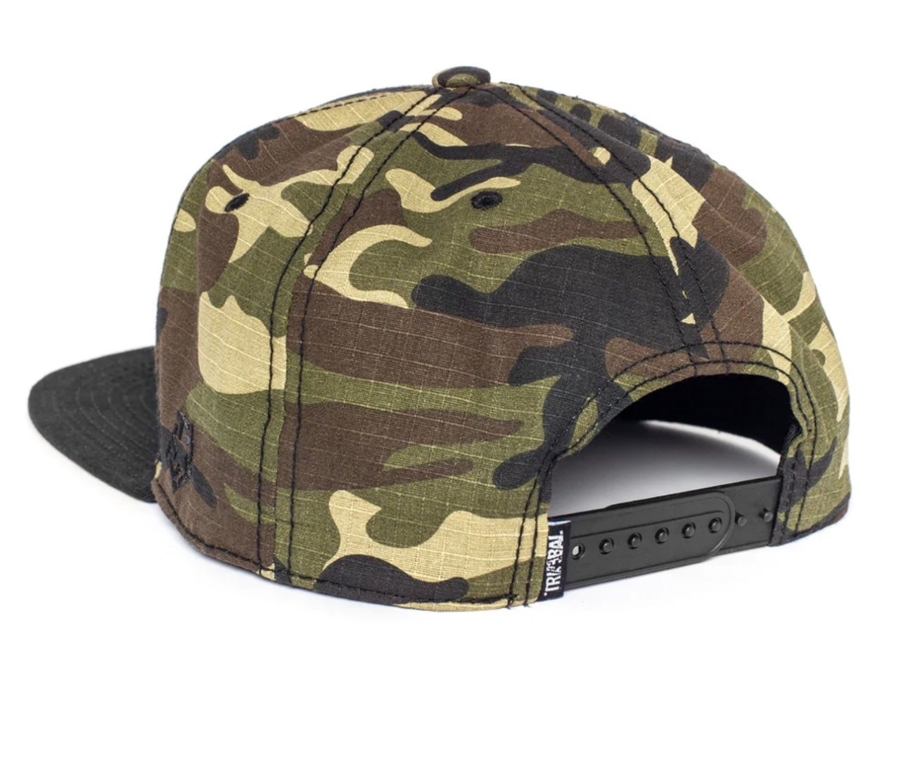 Оригинальная кепка бренда Tribal с вышитым тегом на лобовой части. Козырёк чёрного цвета и основа камуфляж.